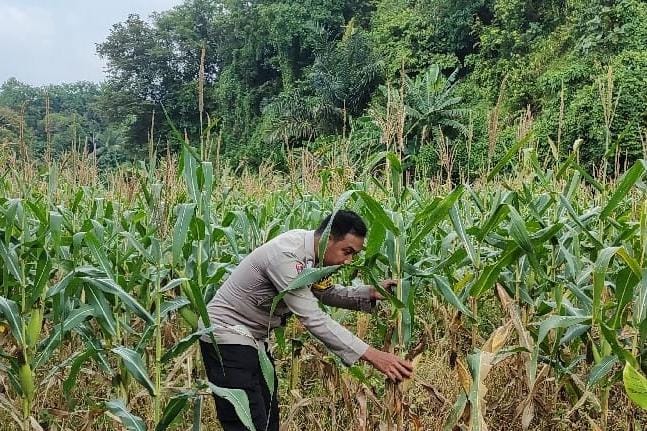 Kegiatan Polsek Anyar Dalam Pengecekan Kondisi Lahan Tanaman Jagung di Wilayah