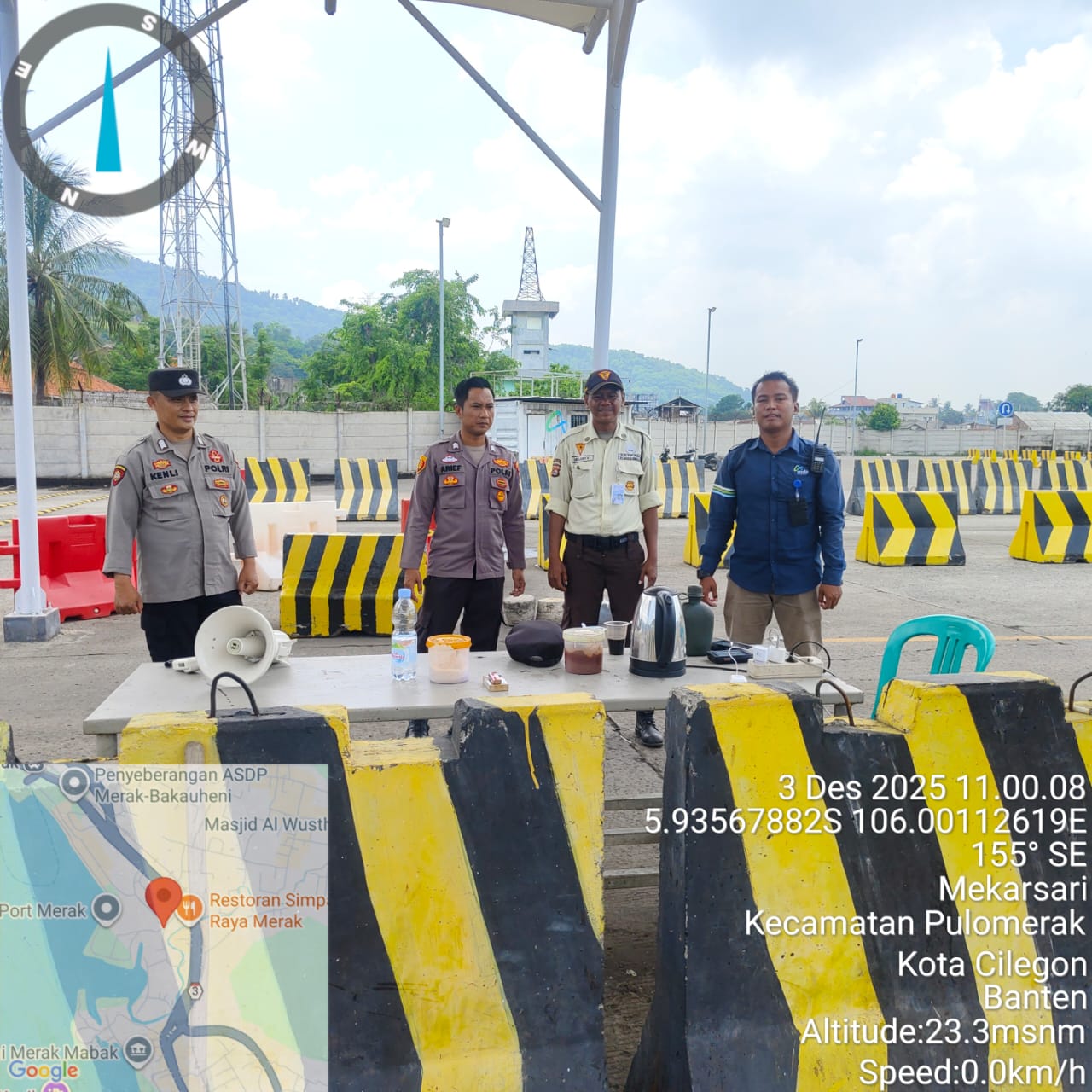 Cilegon - Personel Polsek Kskp Merak Polres Cilegon Polda Banten melaksanakan sambang dan patroli kawasan pelabuhan merak dalam rangka menjaga Harkamtibmas di Kawasan Pelabuhan Merak, Rabu (03/12/2025).