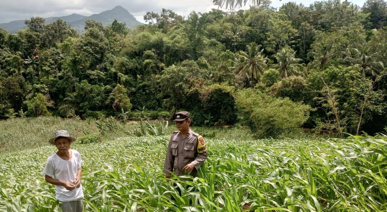 Kegiatan Polsek Anyar Monitoring Pertumbuhan Tanaman Jagung