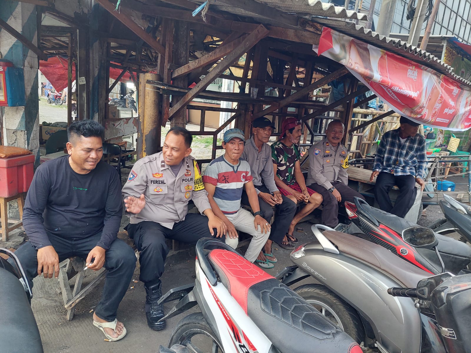Anggota unit patroli samapta Polsek Cilegon sambang kepada warga jalin keakraban menjaga keamanan di lingkungan wilayah hukumnya