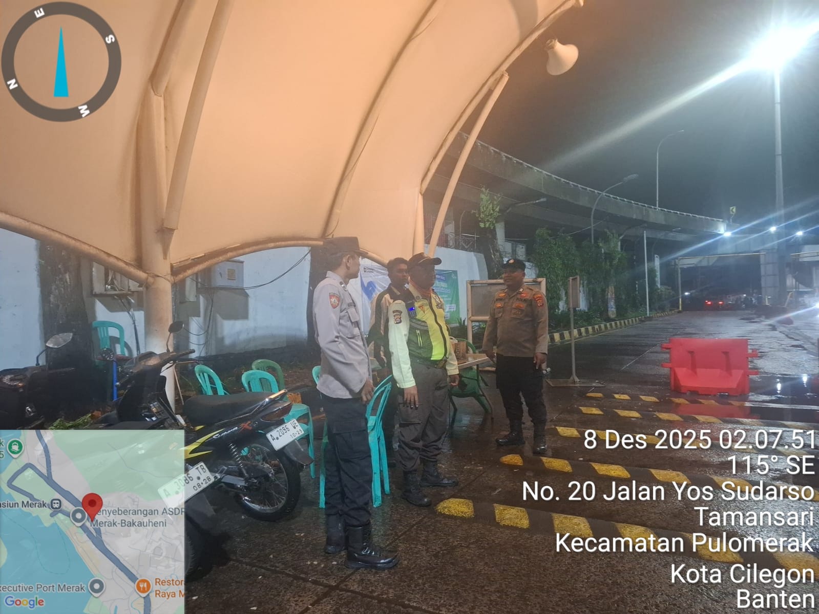 Cilegon - Personil Polsek Kskp Merak Polres Cilegon melaksanakan patroli di kawasan pelabuhan merak memberikan rasa aman dan damai, Senin (08/12/2025)