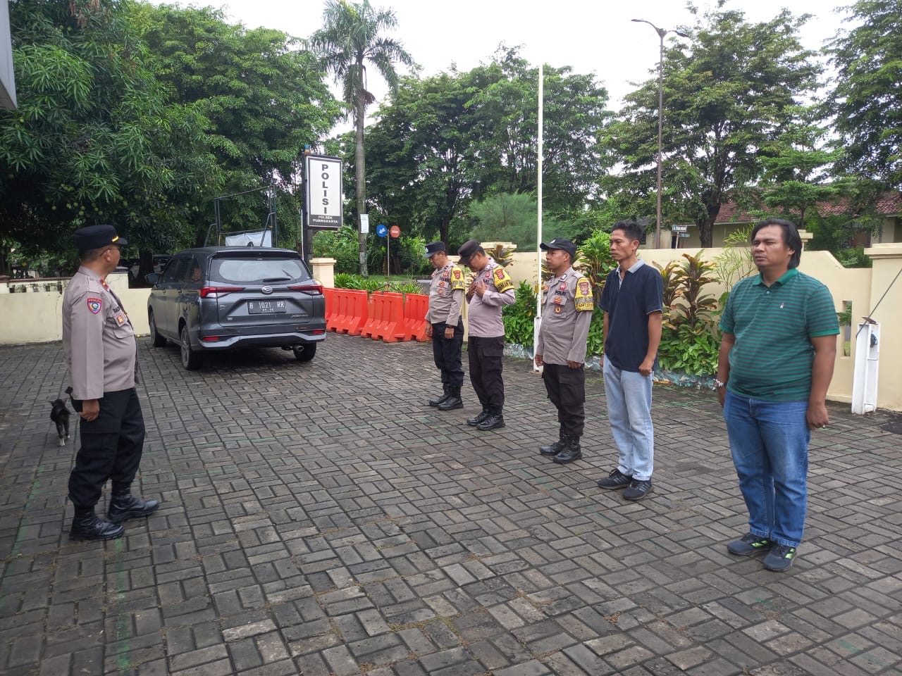Kanit Binmas Polsek Purwakarta Ipda Surahman yang menjabat sebagai Pawas (Pengawas) Polsek Purwakarta, Polres Cilegon, memimpin apel pagi kepada seluruh anggota polisi di Polsek Purwakarta hari ini