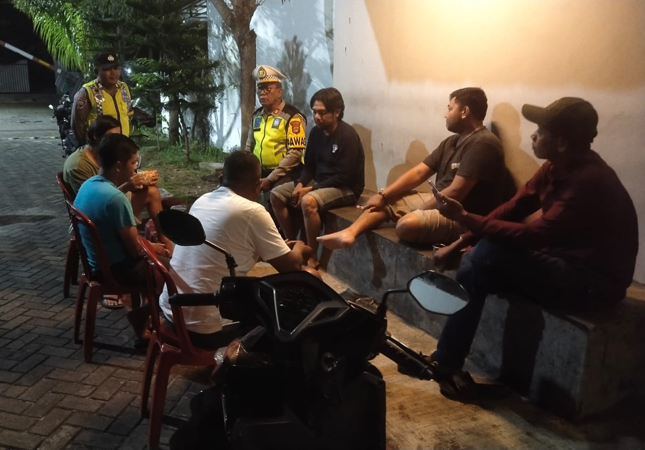 Anggota patroli samapta Polsek Cilegon sambangi ronda malam sampaikan pesan kamtibmas jaga keamanan
