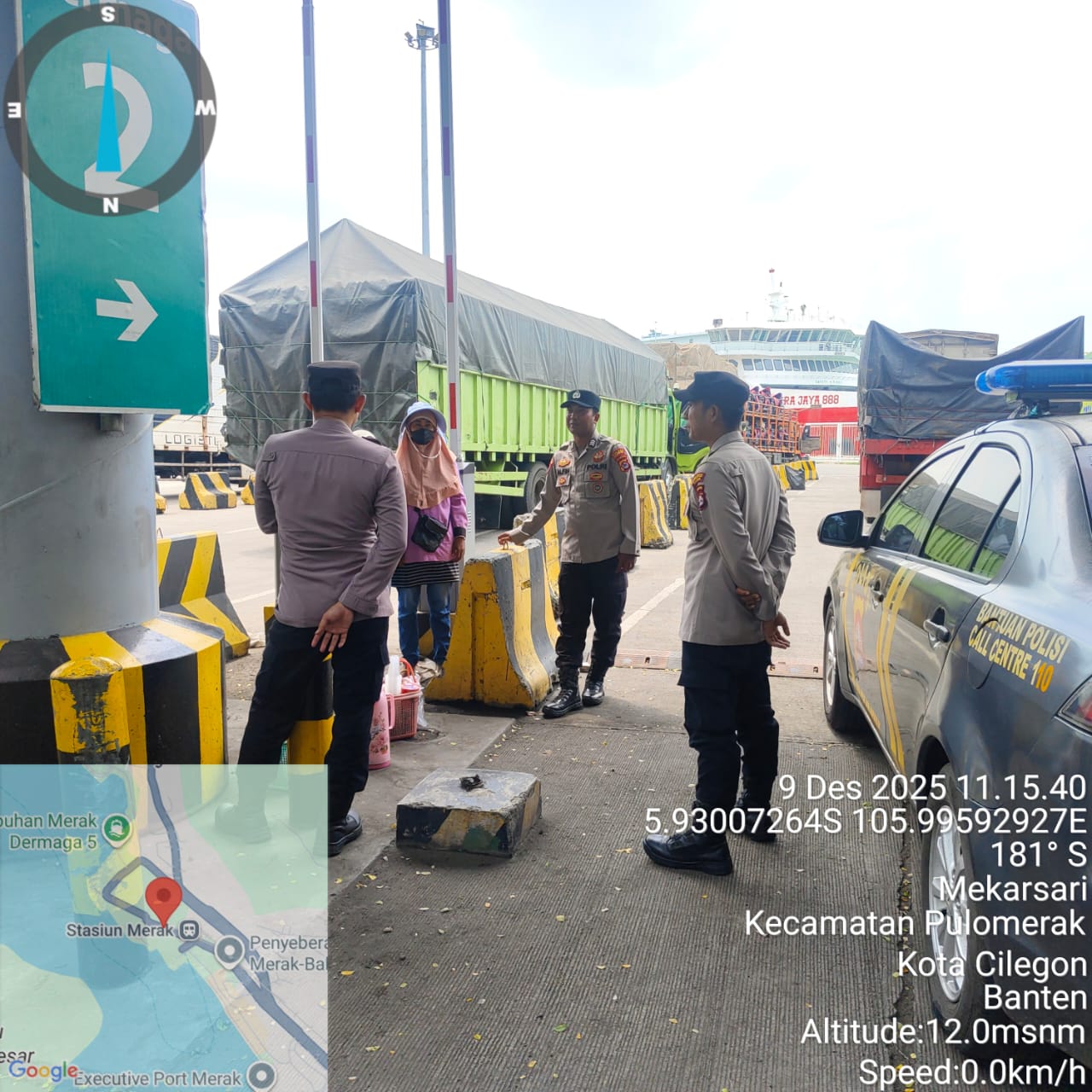 Cilegon - Personel Polsek Kskp Merak Polres Cilegon Polda Banten melaksanakan sambang dan patroli kawasan pelabuhan merak dalam rangka menjaga Harkamtibmas di Kawasan Pelabuhan Merak, Selasa (09/12/2025).