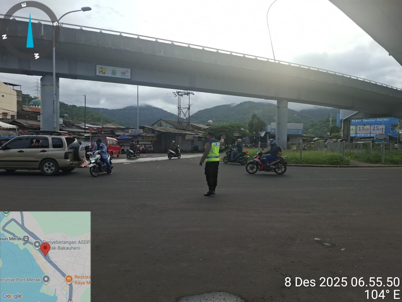 Personil Kskp Merak Atur Arus Antrian Kendaraan R4 Menuju Kapal Ferry Merak