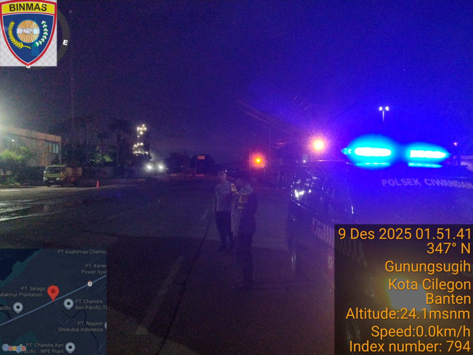*Cilegon * - Polres Cilegon melalui Polsek Ciwandan melaksanakan kegiatan Blue Light Patrol. Kegiatan ini bertujuan untuk mengantisipasi gangguan kamtibmas, premanisme, C3 (curat, curas, dan curanmor), balap liar, gang motor, dan perkelahian remaja didaerah hukum Polsek Ciwandan, Selasa (09/12/2025).
