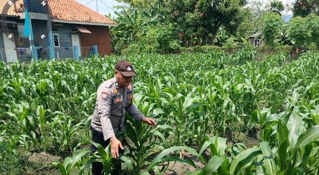 Bhabinkamtibmas Kelurahan Kebondalem Polsek Purwakarta Bersama Petani Cek Kondisi Tanaman Jagung