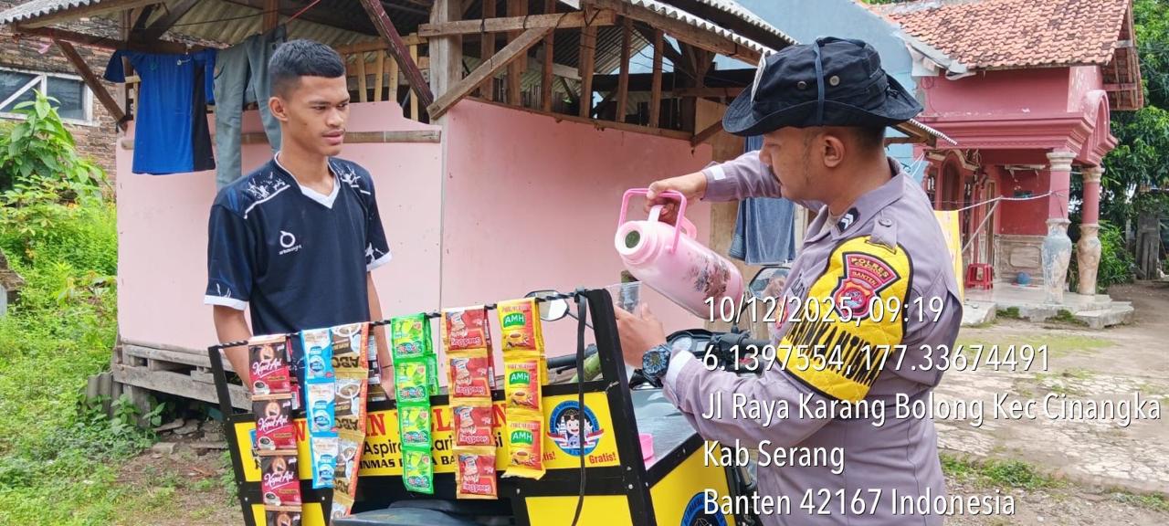 Polres Cilegon ~ Bhabinkamtibmas Polsek Cinangka Polres Cilegon Polda Banten Sambang dan silaturahmi dengan masyarakat merupakan salah satu tugas seorang bhabinkamtibmas untuk mengetahui situasi Kamtibmas Desa binaan dalam menjalin silaturahmi dengan Warga Ds Cinangka di Warung Bhabinkamtibmas, Rabu (10/12/2025).