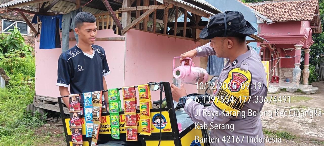 Polres Cilegon ~ Bhabinkamtibmas Polsek Cinangka Polres Cilegon Polda Banten Sambang dan silaturahmi dengan masyarakat merupakan salah satu tugas seorang bhabinkamtibmas untuk mengetahui situasi Kamtibmas Desa binaan dalam menjalin silaturahmi dengan Warga Ds Cinangka di Warung Bhabinkamtibmas, Rabu (10/12/2025).