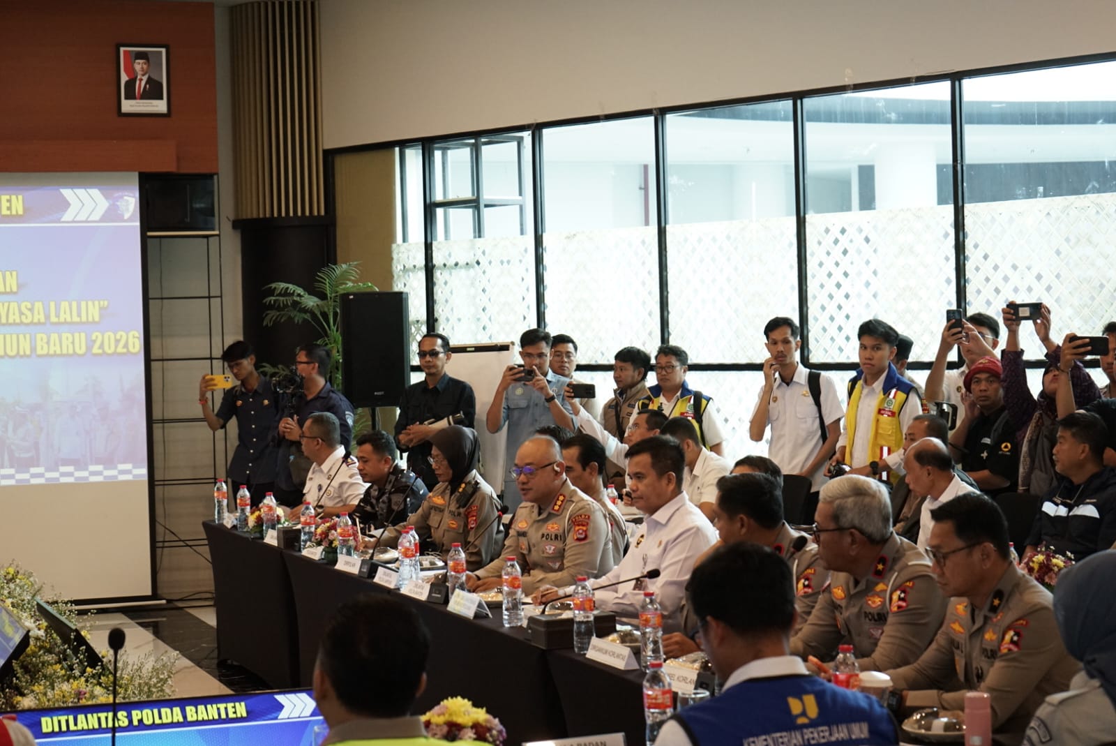 Polda Banten memaparkan kesiapan sarana prasarana, mulai dari Pelabuhan Merak dengan 7 dermaga dan 69 kapal, buffer zone PT Indah Kiat dengan kapasitas lebih dari 2.000 kendaraan kecil, hingga Pelabuhan Ciwandan dan Pelabuhan BBJ sebagai titik pendukung penyeberangan. Sejumlah pola rekayasa lalu lintas turut disiapkan, mulai dari pengalihan arus, delay system KM 43 dan 68, hingga skema satu arah menuju pelabuhan ketika terjadi kepadatan.