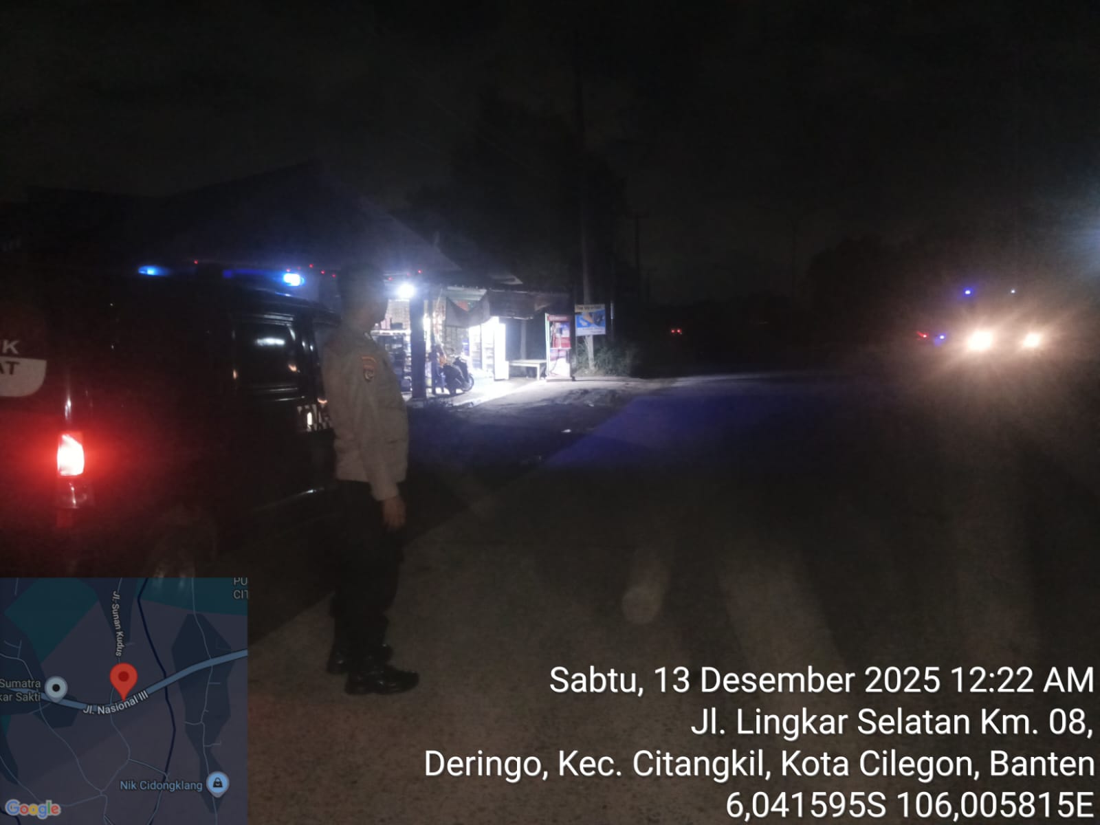 Cilegon – Dalam Rangka Pencegahan Street Crime dan Memelihara situasi keamanan dan ketertiban serta memberikan rasa aman dan nyaman di masyarakat,Salah satu upaya untuk mewujudkan hal tersebut sebagaimana yang dilakukan oleh Personil Polsek Ciwandan Polres Cilegon Polda Banten melaksanakan giat patroli blue light malam hari hingga menjelang pagi, Sabtu (13/12/2025).