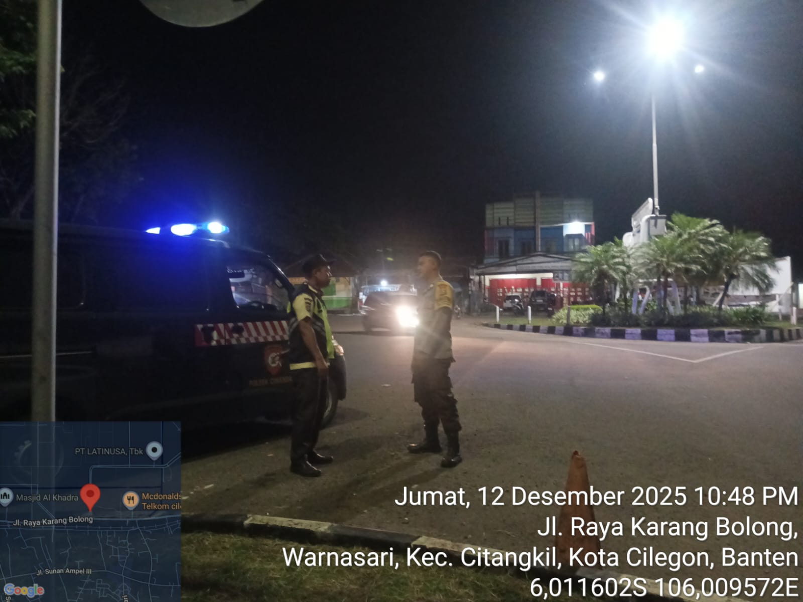Cilegon – Dalam Rangka Pencegahan Street Crime dan Memelihara situasi keamanan dan ketertiban serta memberikan rasa aman dan nyaman di masyarakat,Salah satu upaya untuk mewujudkan hal tersebut sebagaimana yang dilakukan oleh Personil Polsek Ciwandan Polres Cilegon Polda Banten melaksanakan giat patroli blue light malam hari hingga menjelang pagi, Sabtu (13/12/2025).