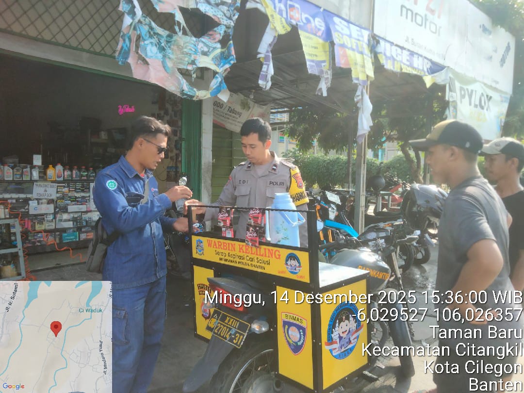 Cilegon - Bhabinkamtibmas Polsek Ciwandan Polres Cilegon Polda Banten melaksanakan kegiatan WARBIN (warung Blnhabinkamtibmas) di Lingkungan Binaan, Minggu (14/12/2025).