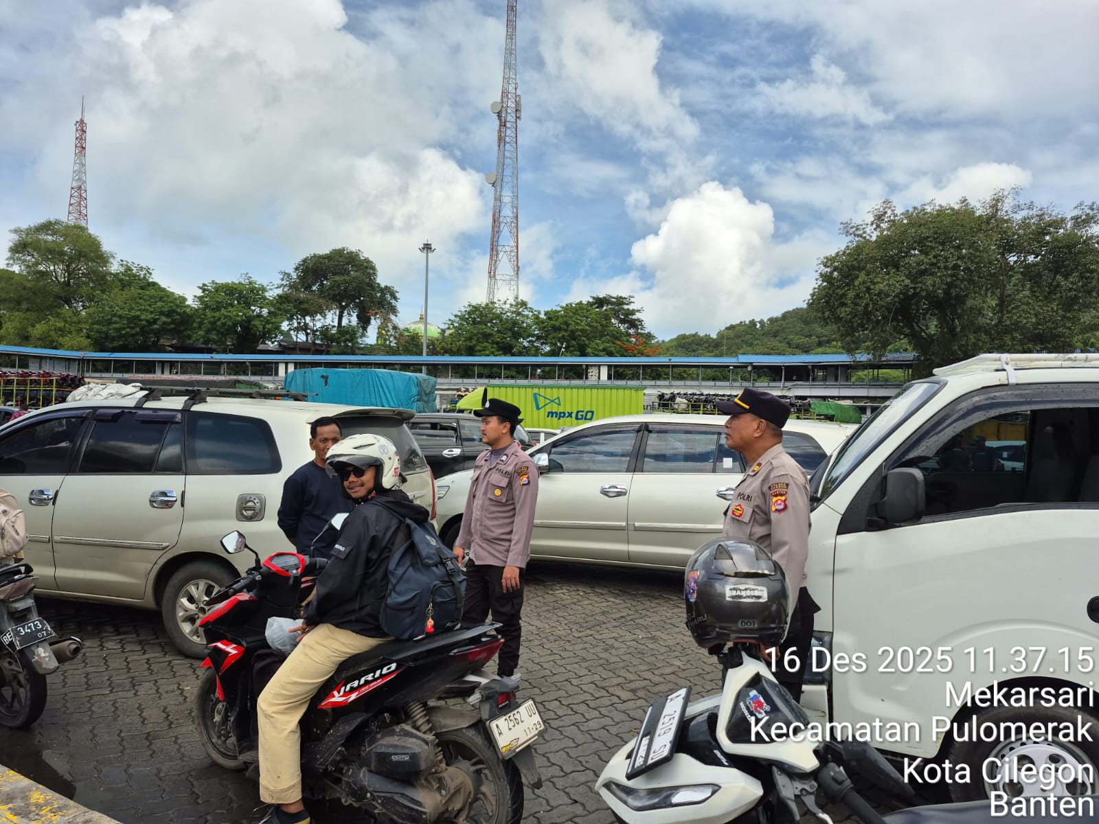 Cilegon - Personel Polsek Kskp Merak Polres Cilegon Polda Banten melaksanakan sambang dan patroli kawasan pelabuhan merak dalam rangka menjaga Harkamtibmas di Kawasan Pelabuhan Merak, Selasa (16/12/2025).