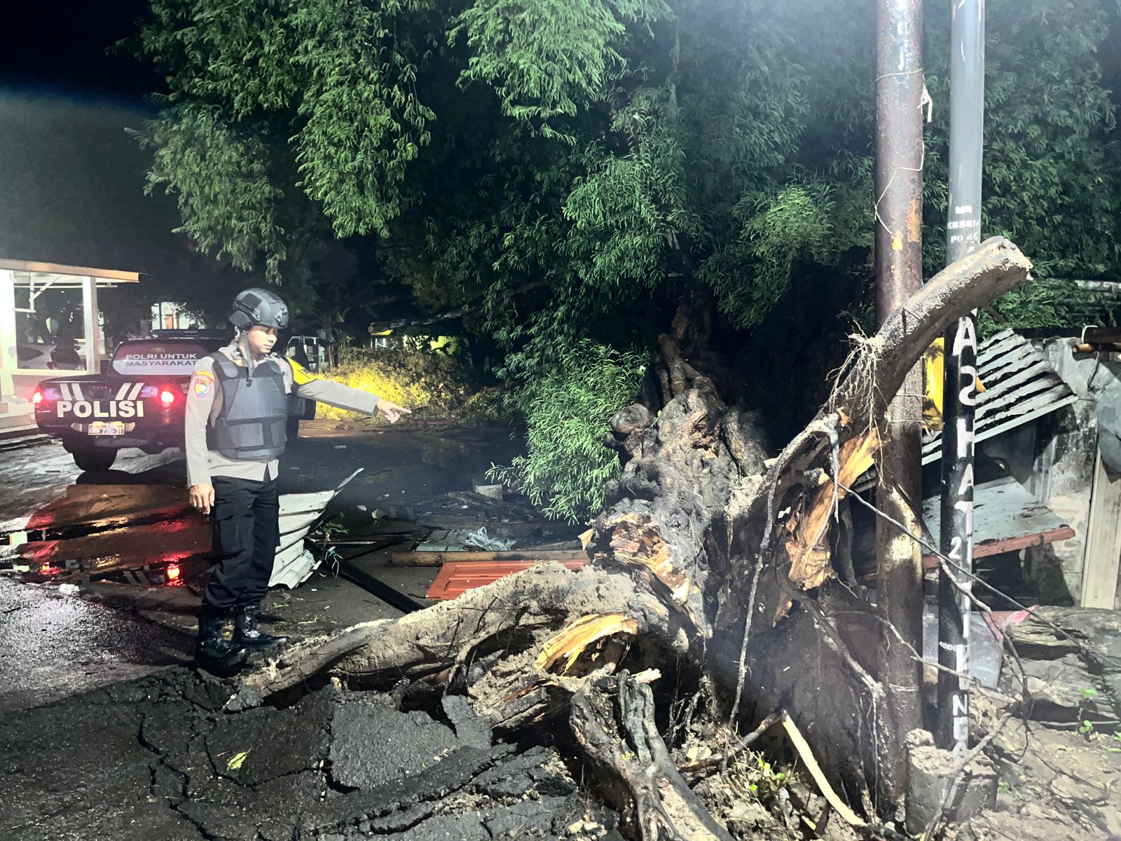Personil Polsek Ciwandan Monitoring Pohon Tumbang