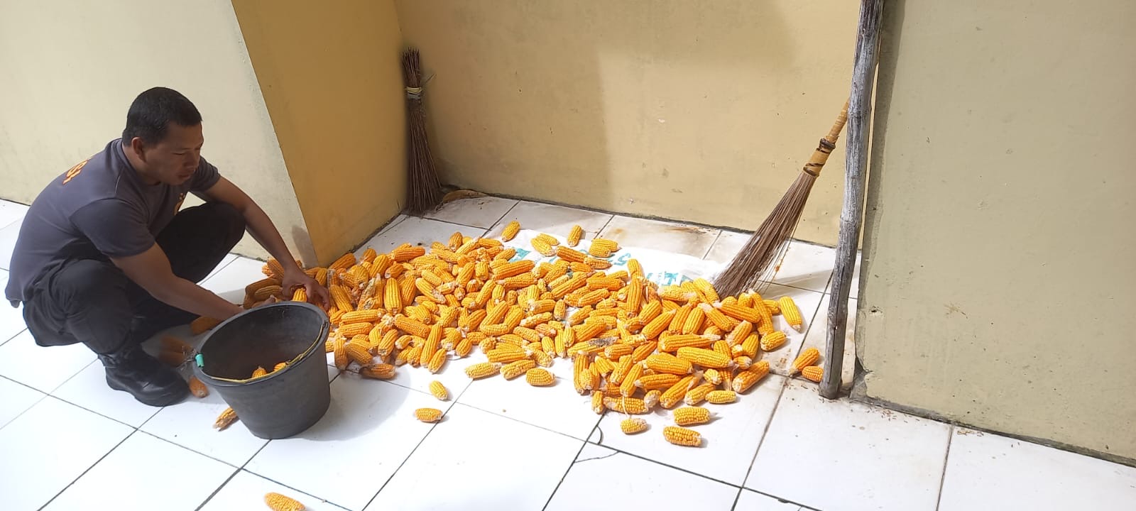 -Polres Cilegon, Jumat.[18-12-2025] –Polda Banten.personil  Bhabinkamtibmas Kelurahan Kotabumi Bripka Agustoni dari Polsek Purwakarta Polres Cilegon menunjukkan keakraban dengan warga binaannya dengan membantu menjemur jagung di pekarangan rumah salah satu warga. Tindakan itu mendapatkan apresiasi hangat dari warga setempat.