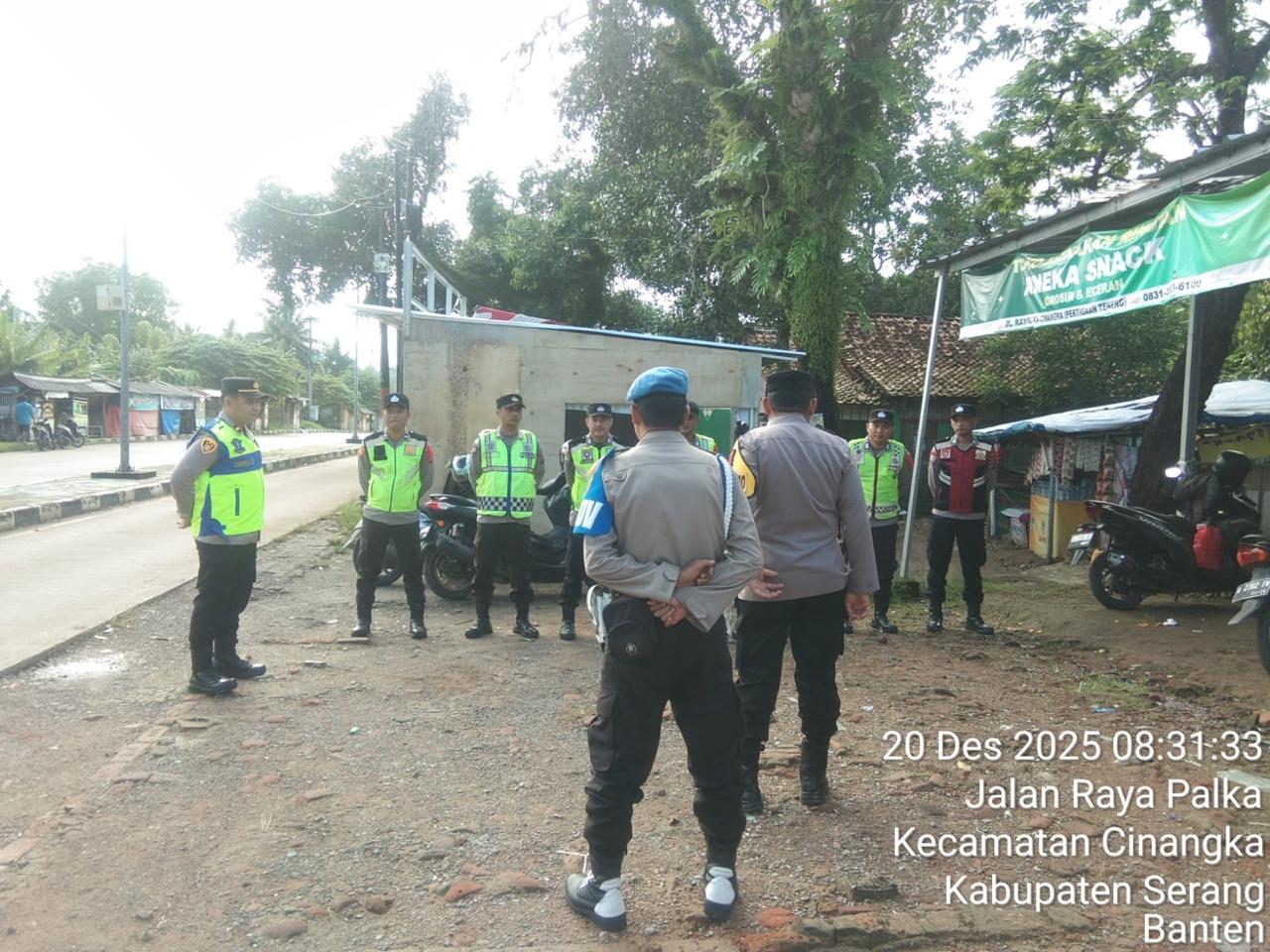 *POLRES CILEGON* Polda Banten. Menjaga kegiatan dan memastikan Aman Polsek Cinangka Polres Cilegon terjunkan Petugas menjaga pengamanan kegiatan PAM Natal dan tahun baru di Pospam Cinangka Kecamatan Cinangka. Sabtu (20/12/2025).