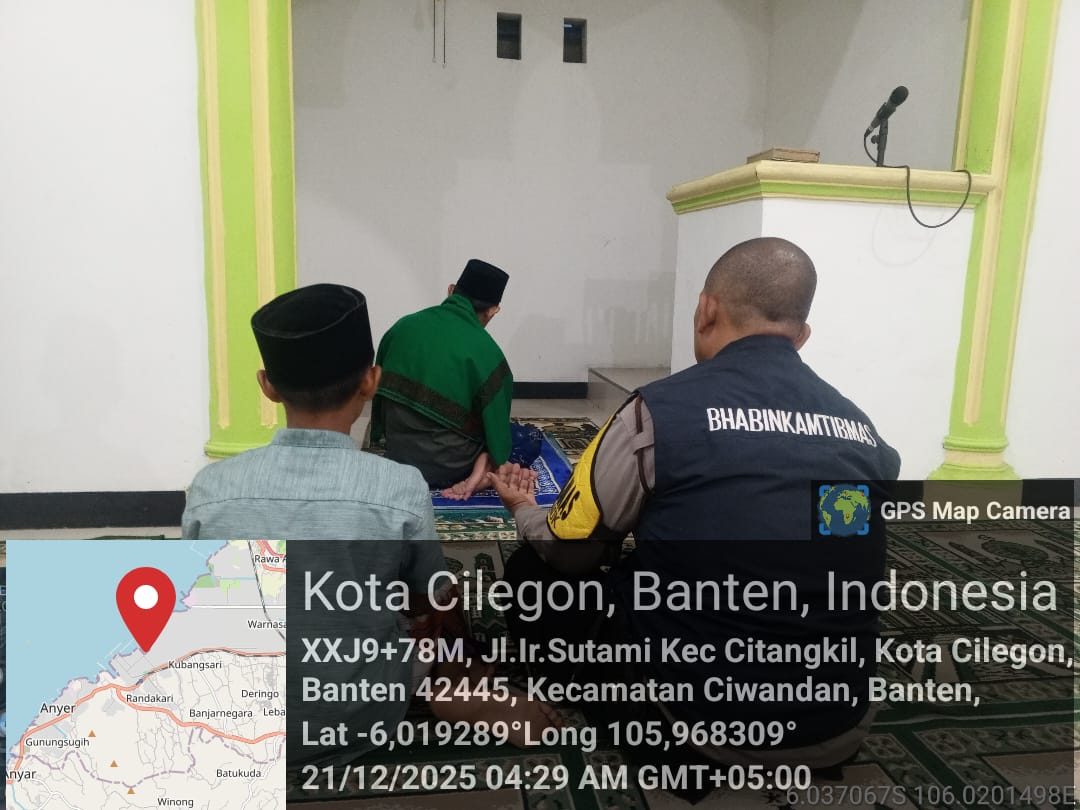 Cilegon - Dalam Rangka Implementasi Program Kapolda Banten Yaitu Sholat Jum’at Keliling Dan Berjama’ah Serta Memakmurkan Masjid Bhabinkamtibmas Polsek Ciwandan Polres Cilegon Polda Banten Sholat Berjama’ah dan Bersilaturahmi Bersama masyarakat sebagai upaya meningkatkan Ukhuwah Islamiyah dalam menjalin silaturahmi dan membangun komunikasi yang baik, Minggu (21/12/2025).