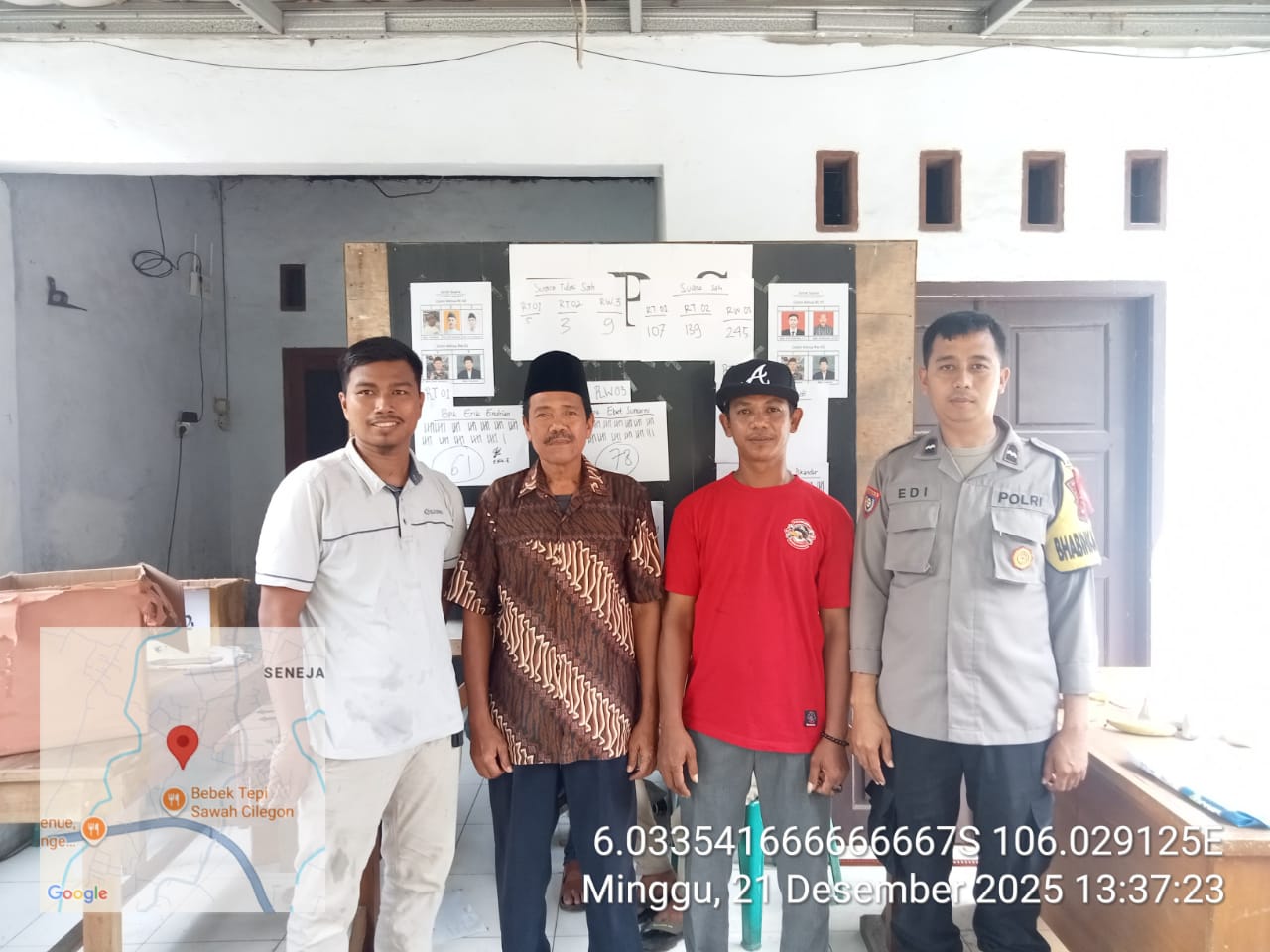 Cilegon - Bhabinkamtibmas Kelurahan Tamanbaru Polsek Ciwandan Polres Cilegon Polda Banten AIPDA Ediyanto menghadiri pemilihan Ketua RW 003 Lingkungan Kubang Lesung kelurahan Tamanbaru Kecamatan Citangkil Kota Cilegon, Minggu (21/12/2025).