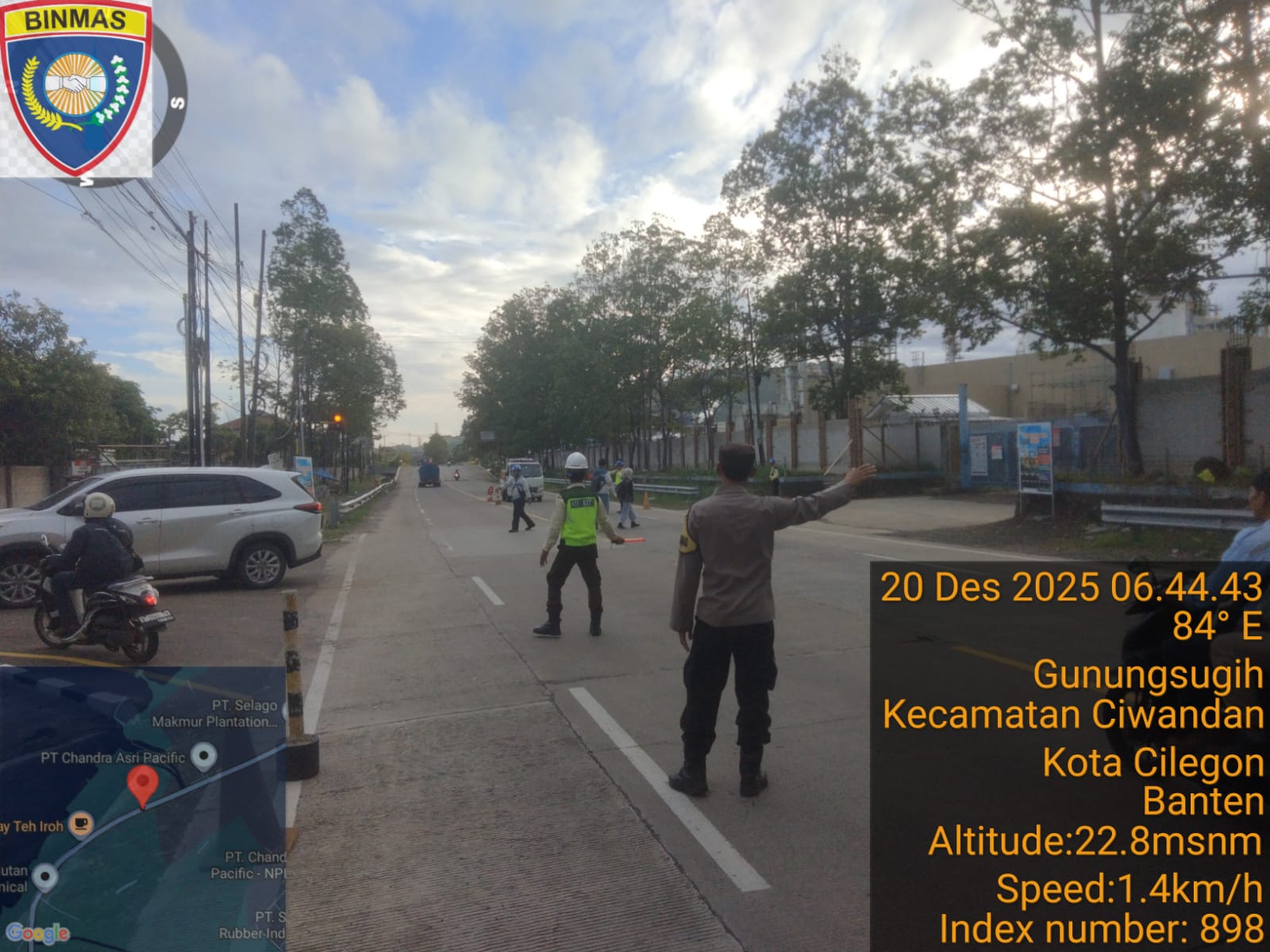 Cilegon - Personil  Polsek Ciwandan Polres Cilegon Polda Banten melaksanakan giat Strong Poin Pengaturan Lalu Lintas Disimpang Brown Kelurahan Gunung Sugih guna menciptakan ketertiban, keamanan dan Kelancaran Lalu-lintas bagi masyarakat, Minggu (21/12/2025).