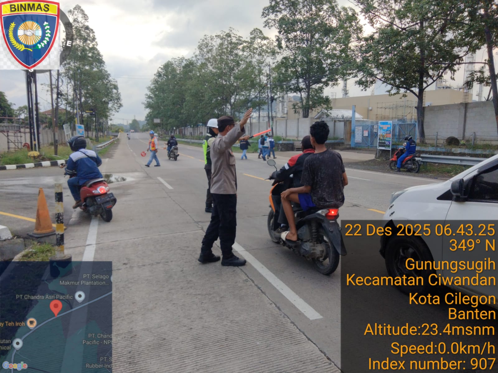 Cilegon – Berikan Pelayanan Kepada Masyarakat Personil Polsek Ciwandan Polres Cilegon Polda Banten melaksanakan pengaturan di titik kepadatan Arus Lalu-lintas Yang Ada Di daerah Hukum Polsek Ciwandan, Jum'at (23/12/2025).