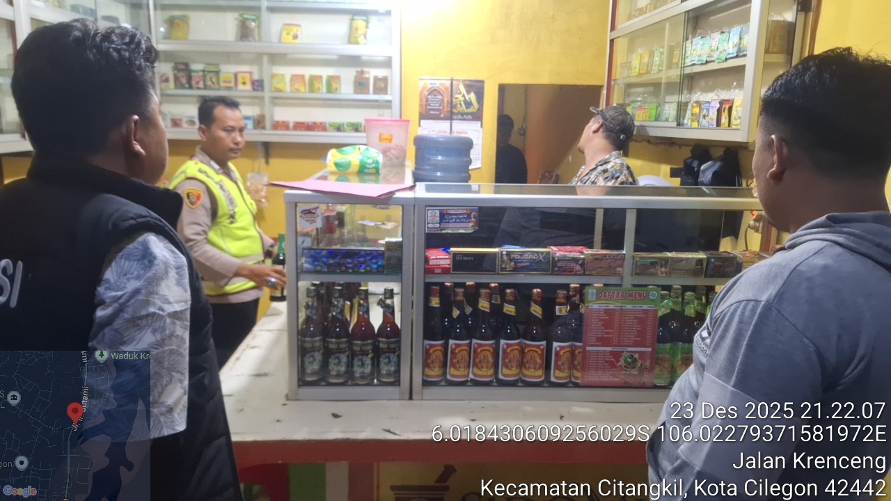 Polsek Ciwandan melaksanakan Kegiatan KRYD OPS Miras di wilayah hukumnya dalam rangka antisipasi gangguan kamtibmas menjelang Natal dan tahun baru 2026. Razia dipimpin Panit I Reskrim IPDA Ucu Sumantri S.H. dan dilakukan kebeberapa warung jamu di Citangkil dan Ciwandan, seperti di pertigaan Beringin Link. Gardu Iman, Kel. Warnasari, Link. Cimerak Kel. Kebon Sari, dan sekitar jalan lingkar Selatan Citangkil-Ciwandan.