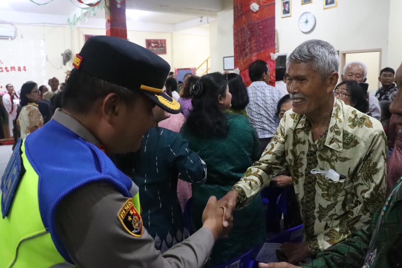 Forkopimda turut menyampaikan ucapan selamat Natal kepada jemaat serta membagikan bunga dan bingkisan sebagai bentuk perhatian dan simbol damai Natal. Respons hangat dan penuh sukacita terlihat dari para jemaat yang menyambut langsung pemberian tersebut.