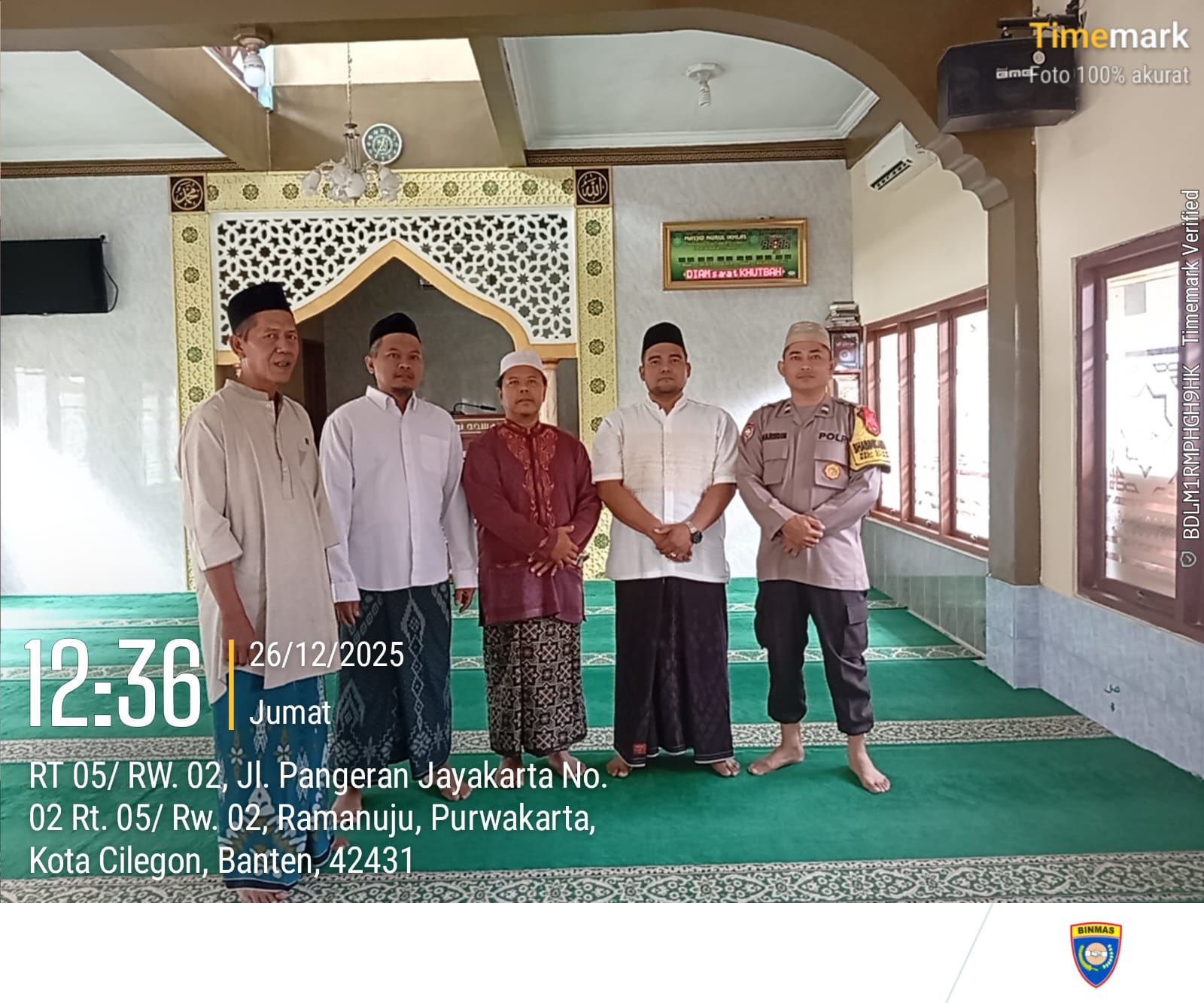 Cilegon - Guna memastikan Harkamtibmas tetap berlangsung aman kondusif,Bhabinkamtibmas Polsek Ciwandan Polres Cilegon Polda Banten menyambangi DKM pengurus Masjid Usai Sholat Berjama’ah, Jum'at (26/12/2025).