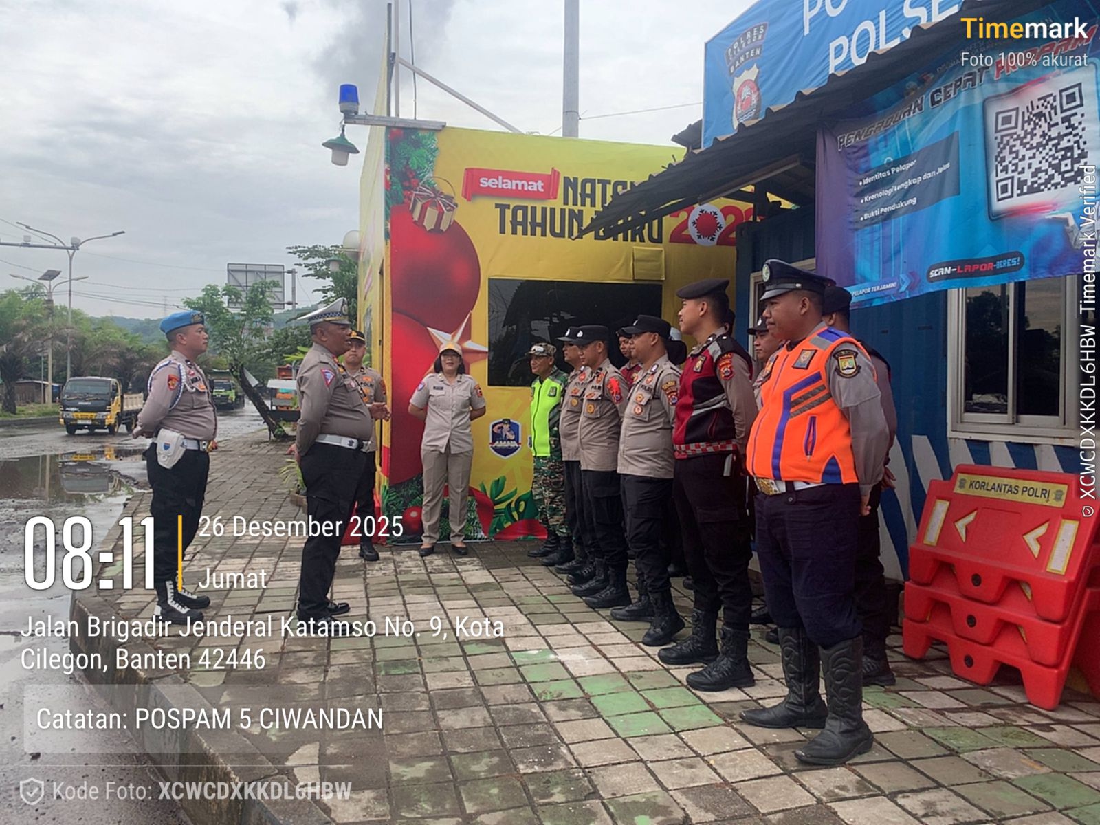 Cilegon - Personil Pospam 5 Ciwandan Polsek Ciwandan Polres Cilegon Polda Banten melaksanakan Apel Kesiapan Pelaksanaan kegiatan pengamanan Arus Lalu-lintas Wisata Dalan Operasi Lilin Maung 2025, Jum'at (26/12/2025).