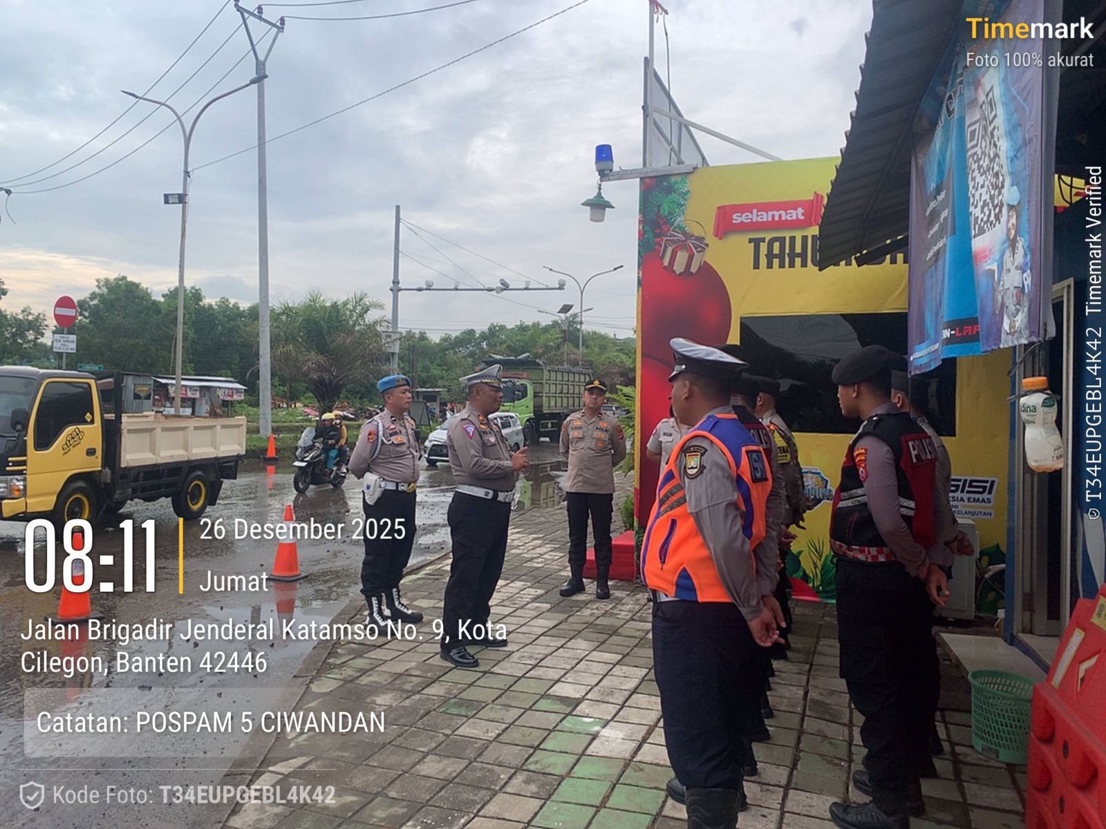 Cilegon - Personil Pospam 5 Ciwandan Polsek Ciwandan Polres Cilegon Polda Banten melaksanakan Apel Kesiapan Pelaksanaan kegiatan pengamanan Arus Lalu-lintas Wisata Dalan Operasi Lilin Maung 2025, Jum'at (26/12/2025).
