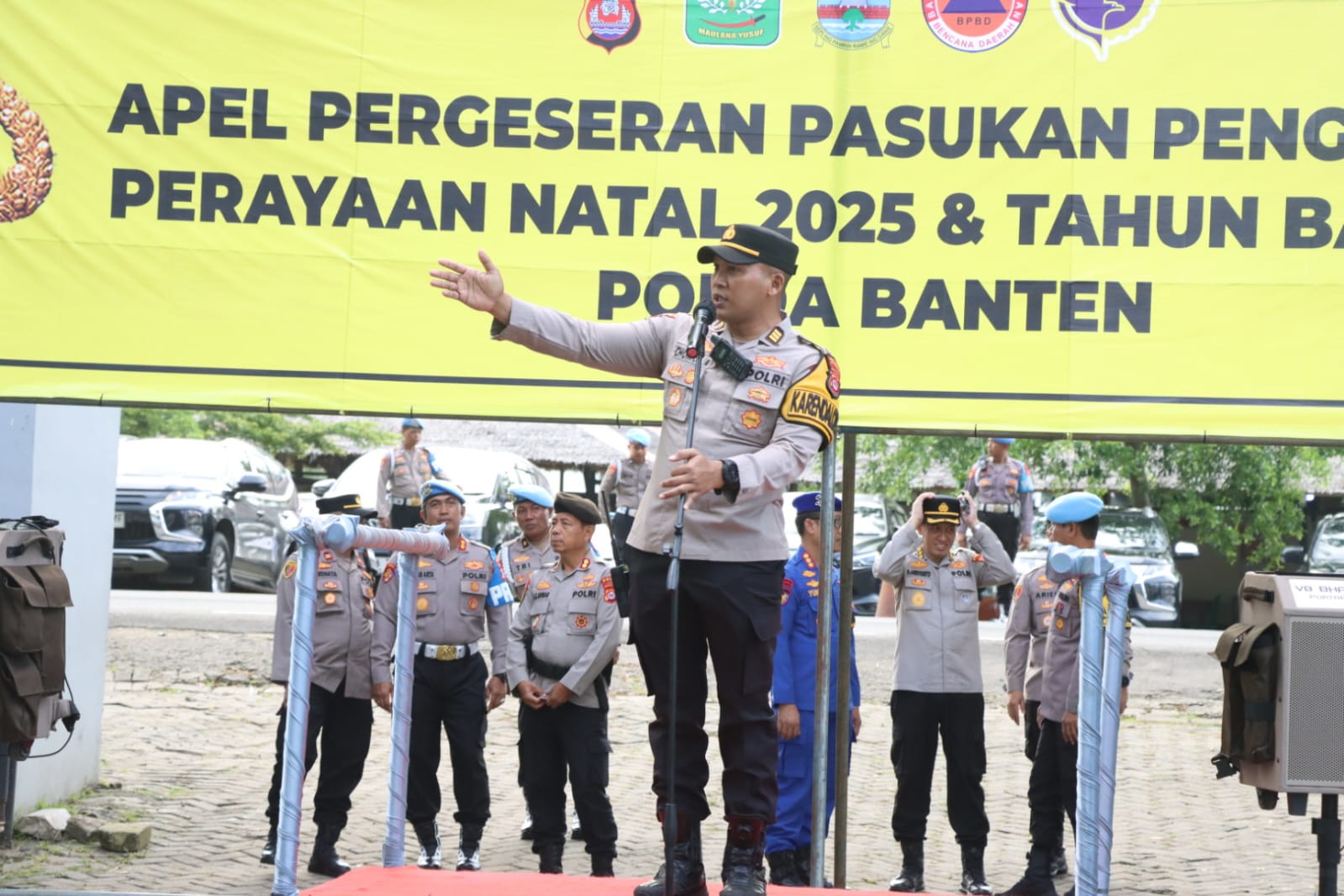 Apel dimulai sekitar pukul 07.40 WIB, dipimpin dan dihadiri langsung oleh Karoops Polda Banten Kombes Pol Yofie Girianto Putro, S.I.K., M.H., bersama Dir Lantas Polda Banten Kombes Pol Dr. Leganek Mawardi, S.H., S.I.K., M.S., Dirbinmas Polda Banten Kombes Pol Imam Tarmudi, S.I.K., M.H., Dirpolair Polda Banten Kombes Pol Yunus Hadith Pranoto, S.I.K., M.Si., serta sejumlah pejabat utama Polda Banten lainnya.