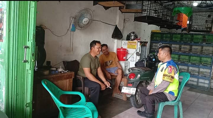 Cilegon - Personil Bhabinkamtibmas Polsek Ciwandan Polres Cilegon Polda Banten Menyampaikan Pesan Kamtibmas dan mengajak masyarakat terus aktif dalam kepedulian terhadap Pemeliharaan keamanan lingkungan di daerah Binaanya, Minggu (28/12/2025).