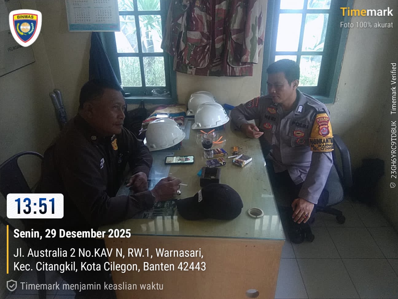 Cilegon - Bhabinkamtibmas Polsek Ciwandan Polres Cilegon Polda Banten Bangun Kemitraan Kamtibmas Dan Datangi Petugas security Meminta Agar Dapat Membantu Tugas-tugas Polri Dalam Menjaga Harkamtibmas, Senin (29/12/2025).