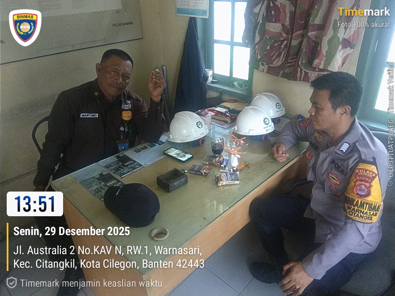 Cilegon - Bhabinkamtibmas Polsek Ciwandan Polres Cilegon Polda Banten Bangun Kemitraan Kamtibmas Dan Datangi Petugas security Meminta Agar Dapat Membantu Tugas-tugas Polri Dalam Menjaga Harkamtibmas, Senin (29/12/2025).