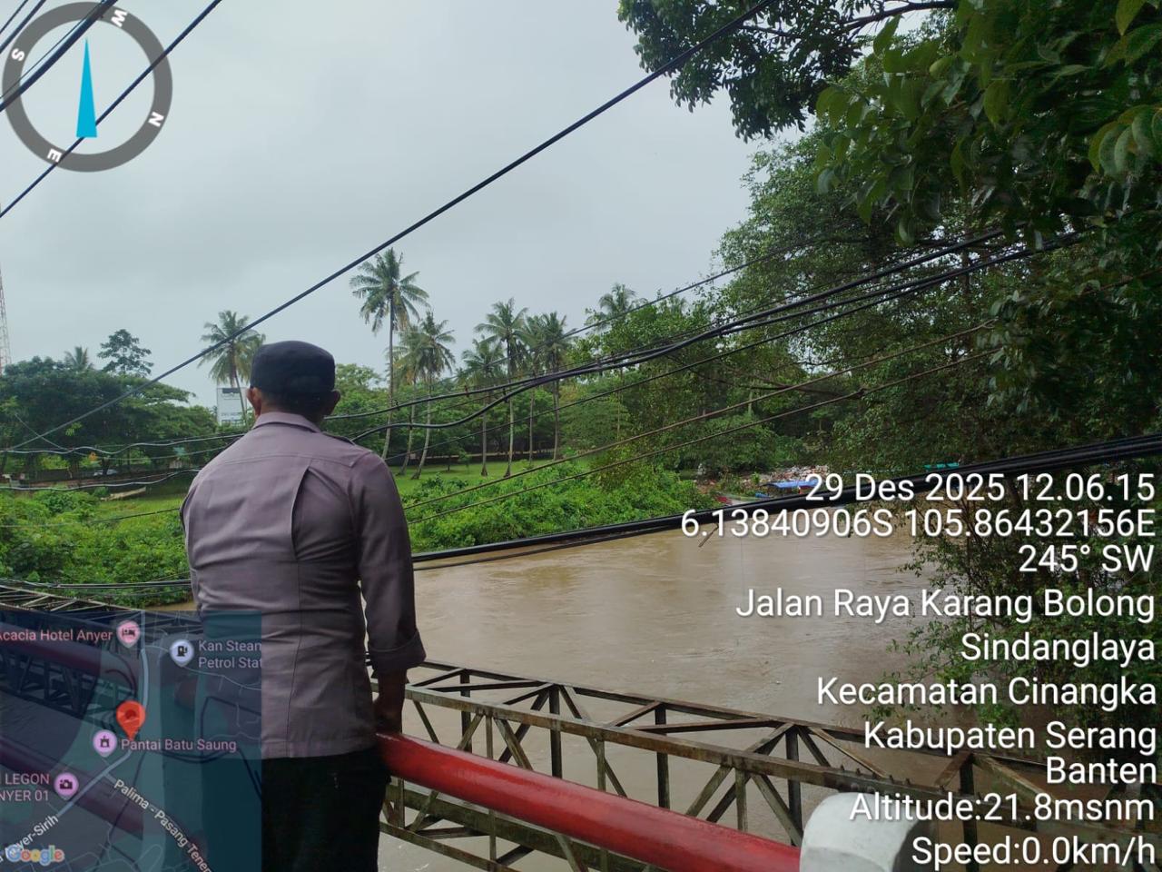 Piket Polsek Cinangka secara rutin melakukan pengecekan kondisi sungai dan berkoordinasi dengan pihak terkait untuk memantau perkembangan debit air. Pemantauan ini juga melibatkan partisipasi aktif dari masyarakat setempat.