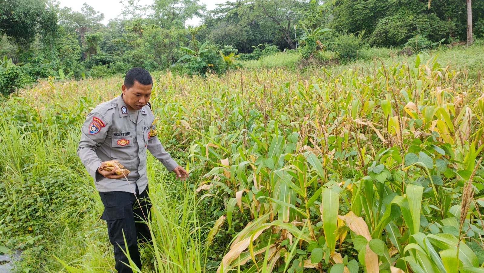 Personel Polsek Purwakarta BRIPKA AGUSTONI Polres Cilegon Cek Tanaman Jagung, Dukung Program Ketahanan Pangan