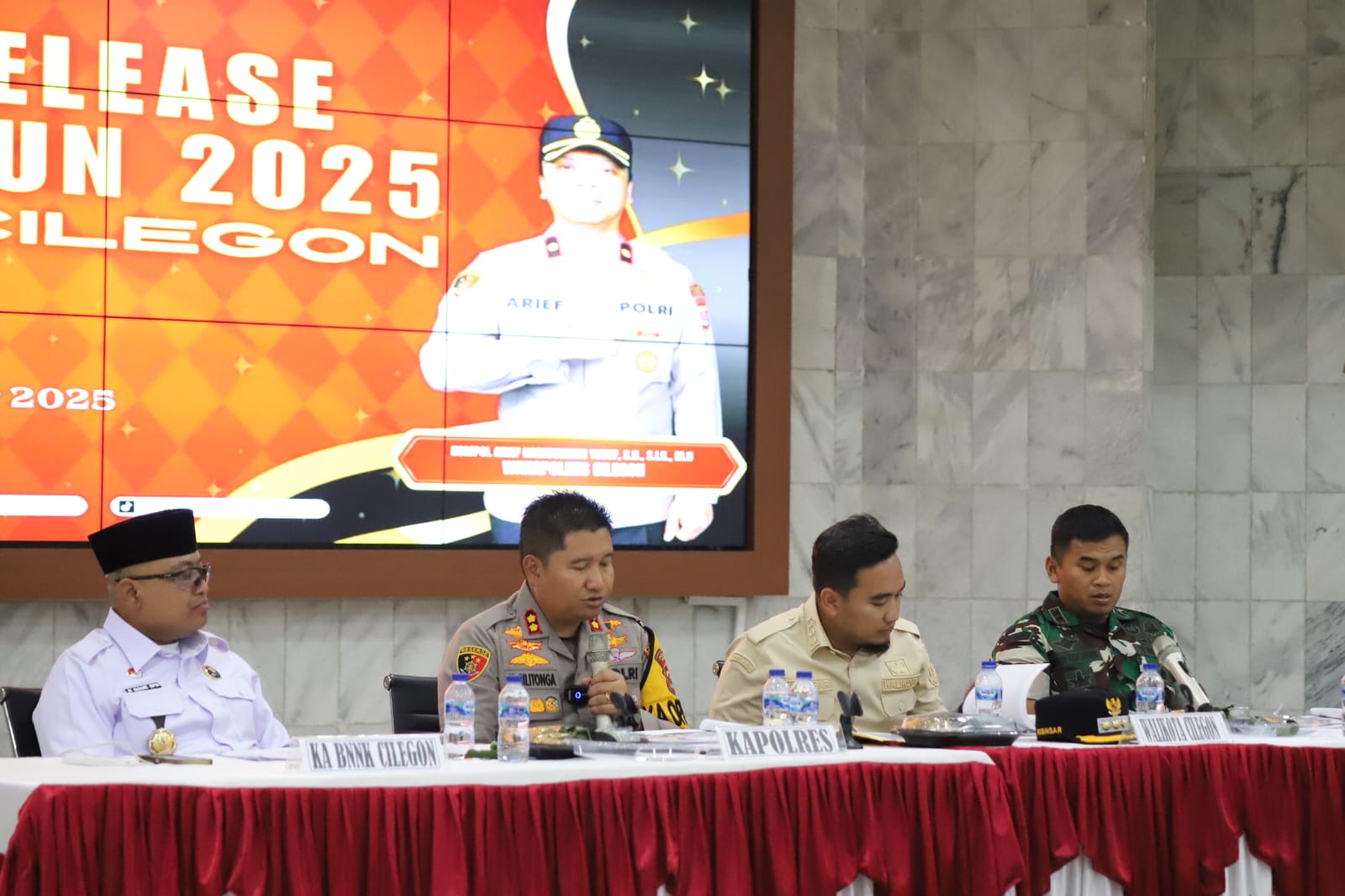 Cilegon – Polres Cilegon Polda Banten menggelar Press Release Akhir Tahun 2025 sebagai bentuk pertanggungjawaban publik sekaligus penyampaian capaian kinerja selama satu tahun terakhir. Kegiatan berlangsung di Aula Wicaksana Leghawa Polres Cilegon pada  pukul 11.30 WIB dipimpin Kapolres Cilegon AKBP Dr. Martua Raja Taripar Laut Silitonga, S.H., S.I.K., M.Si dan dihadiri unsur Forkopimda serta awak media. Senin (29/12/2025).