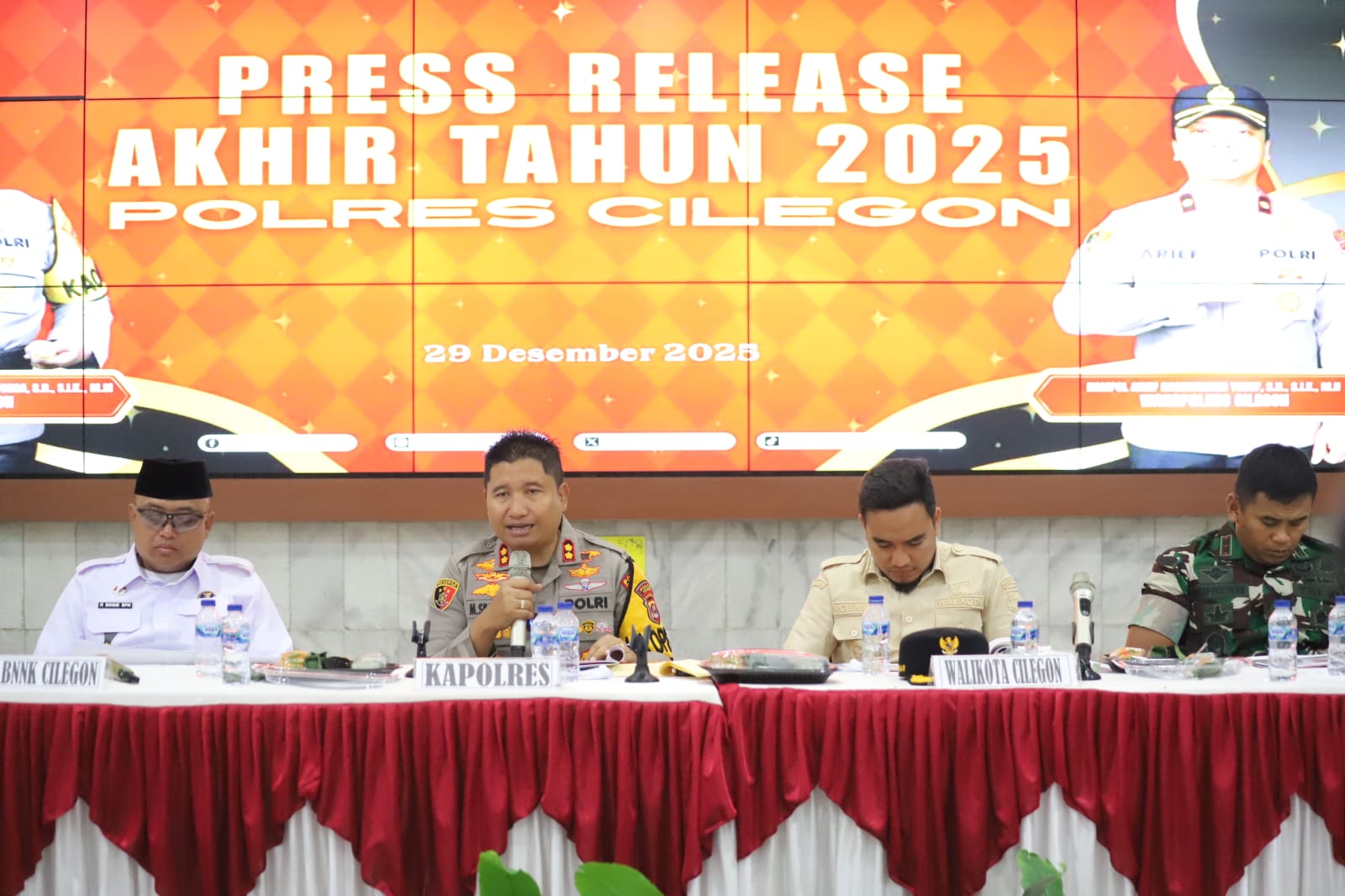 Cilegon – Polres Cilegon Polda Banten menggelar Press Release Akhir Tahun 2025 sebagai bentuk pertanggungjawaban publik sekaligus penyampaian capaian kinerja selama satu tahun terakhir. Kegiatan berlangsung di Aula Wicaksana Leghawa Polres Cilegon pada pukul 11.30 WIB dipimpin Kapolres Cilegon AKBP Dr. Martua Raja Taripar Laut Silitonga, S.H., S.I.K., M.Si dan dihadiri unsur Forkopimda serta awak media. Senin (29/12/2025).