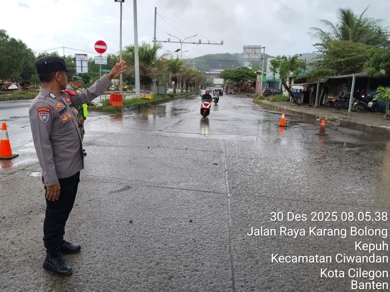 Cilegon - Personil Pos Pam 5 Polsek Ciwandan Polres Cilegon Polda Banten melaksanakan kegiatan pengaturan lalu-lintas dalam pengamanan Libur Natal 2025 Dan Tahun Baru 2026. Selasa (30/12/2025).