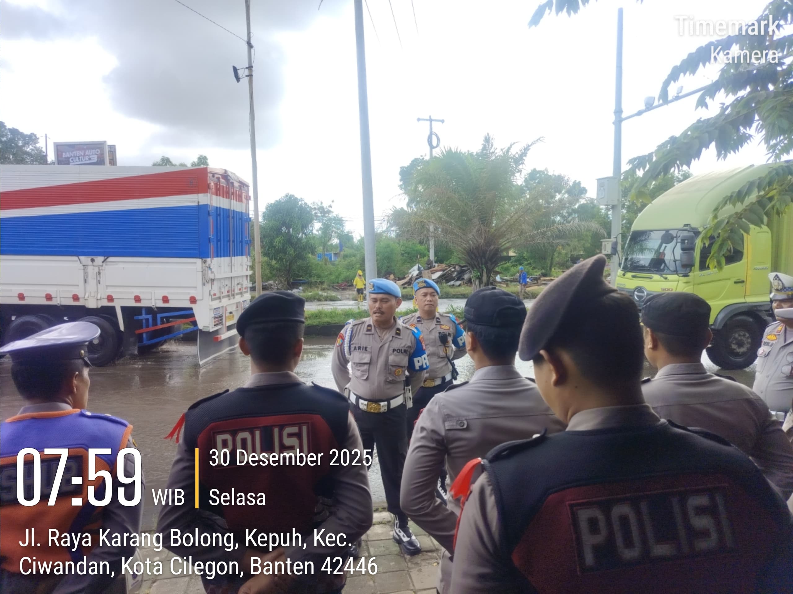 Cilegon - Personil Pospam 5 Ciwandan Polsek Ciwandan Polres Cilegon Polda Banten melaksanakan Apel Kesiapan Pelaksanaan kegiatan pengamanan Arus Lalu-lintas Wisata Dalan Operasi Lilin Maung 2025, Selasa (30/12/2025).