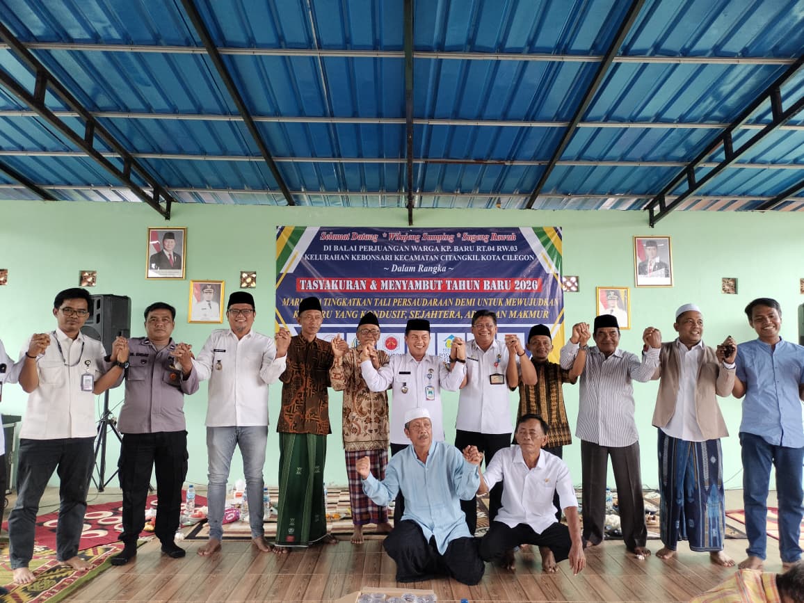Cilegon - Polres Cilegon melalui Bhabinkamtibmas AIPDA M. Enday dan Babinsa SERMA Heriyanto hadiri tasyakuran dan sambutan Tahun Baru 2026 di Balai Perjuangan Warga Kampung Baru Rt. 04/03, Kebonsari, Citangkil. Kegiatan ini bagian dari giat "Commander Wish Kapolres Cilegon TRENDING" untuk jaga kondusifitas keamanan dan kebersamaan dengan masyarakat,Rabu (31/12/2025).
