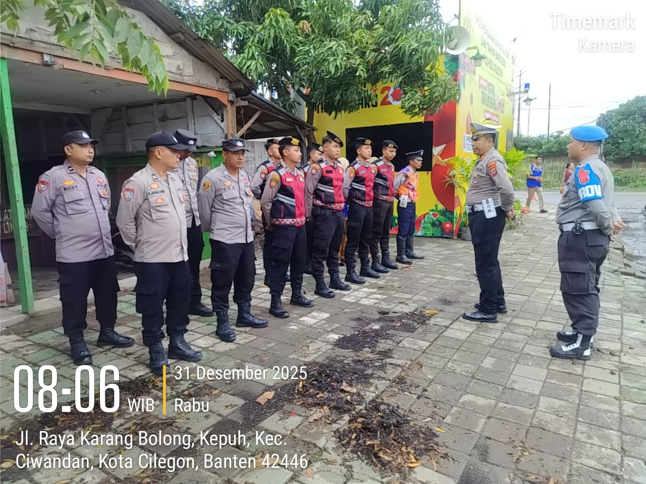 Cilegon - Personil Pospam 5 Ciwandan Polsek Ciwandan Polres Cilegon Polda Banten melaksanakan Apel Kesiapan Pelaksanaan kegiatan pengamanan Arus Lalu-lintas Wisata Dalan Operasi Lilin Maung 2025, Rabu (31/12/2025)