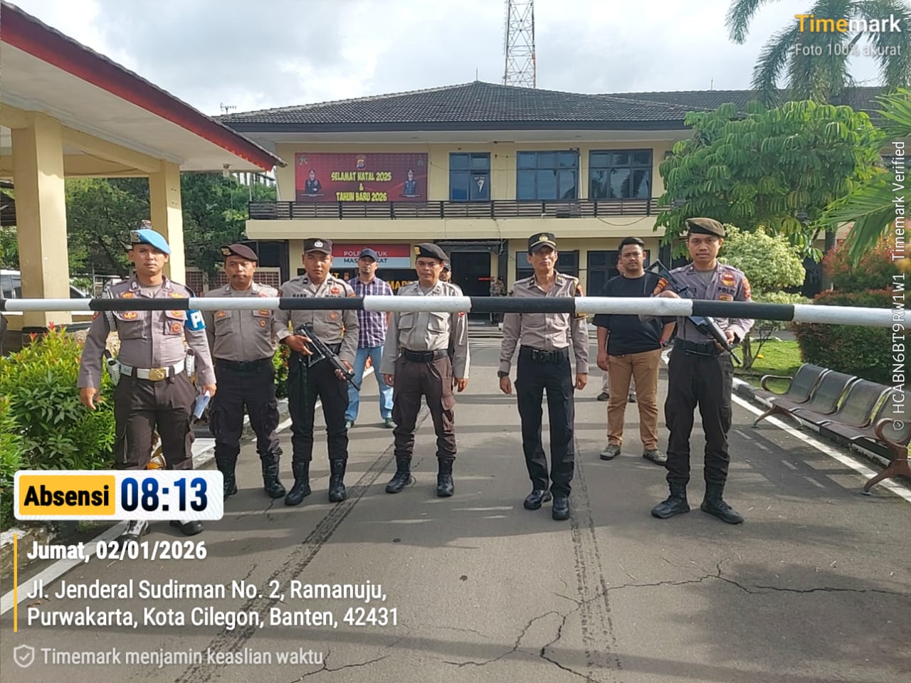 Cilegon, personel Satreskrim Polres Cilegon Polda Banten melaksanakan piket di penjagaan pintu masuk Polres Cilegon Polda Banten untuk memastikan mako Polres Cilegon dalam keadaan aman dan nyaman dalam melayani Masyarakat tanpa adanya gangguan kejahatan. Jumat (02/01/2026).