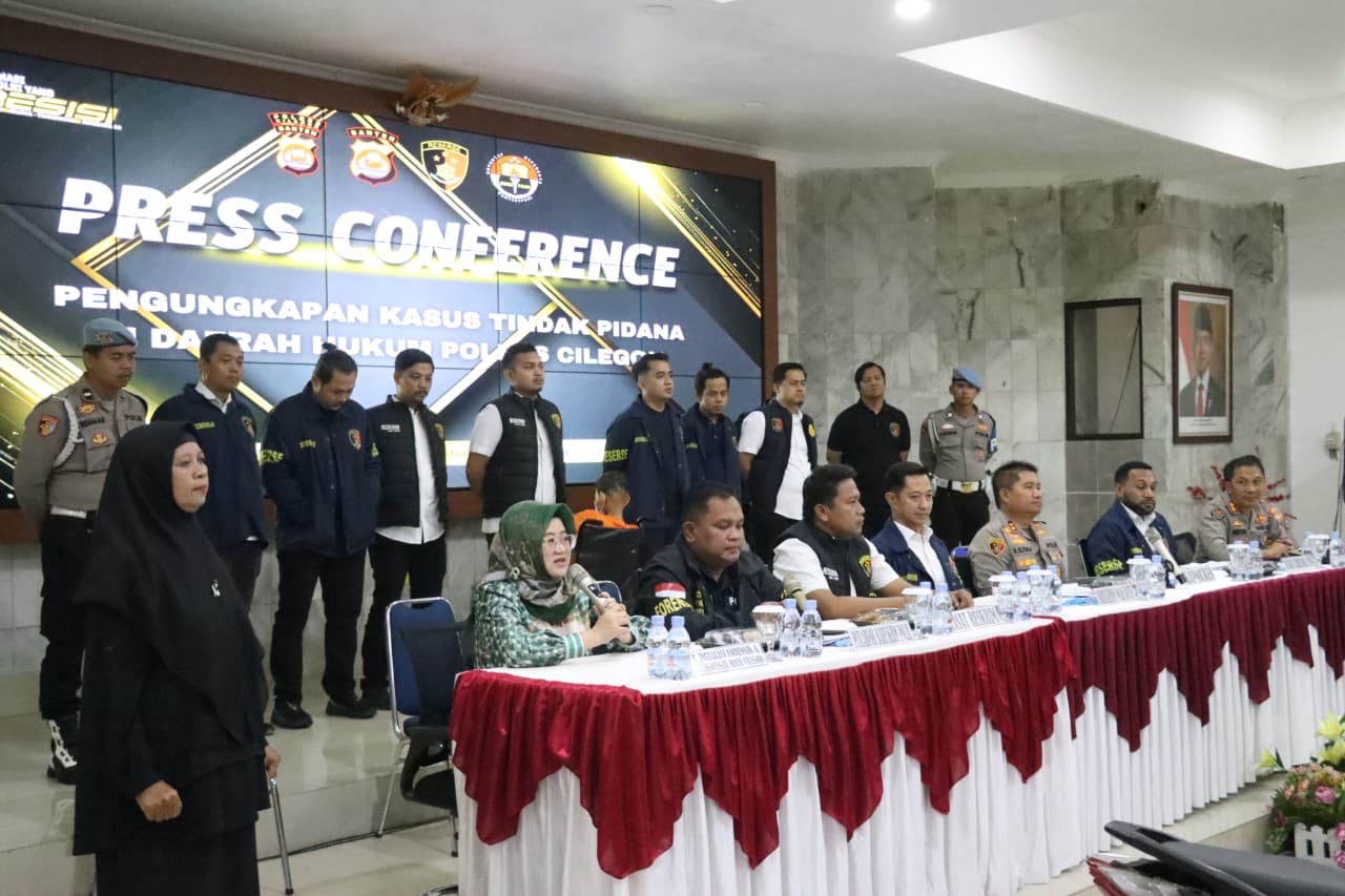 Press conference tersebut disampaikan oleh Ditreskrimum Polda Banten Kombes Pol Dian Setyawan didampingi Kapolres Cilegon AKBP Dr. Martua Raja Taripar Laut Silitonga, Plh. Kabid Humas Polda Banten AKBP Meryadi, Wakapolres Cilegon Kompol Arief Nazarudin, Kasubdit Jatanran Ditreskrimum Polda Banten Kompol Yeremia Iwo, Kasat Reskrim Polres Cilegon AKP Yoga Tama, Ka Instalasi Forensik Modikolegal RSUD Cilegon Dr. Baeti Adhayati SP FM, Puslabfor Polri Kompol Irfan Rofik.