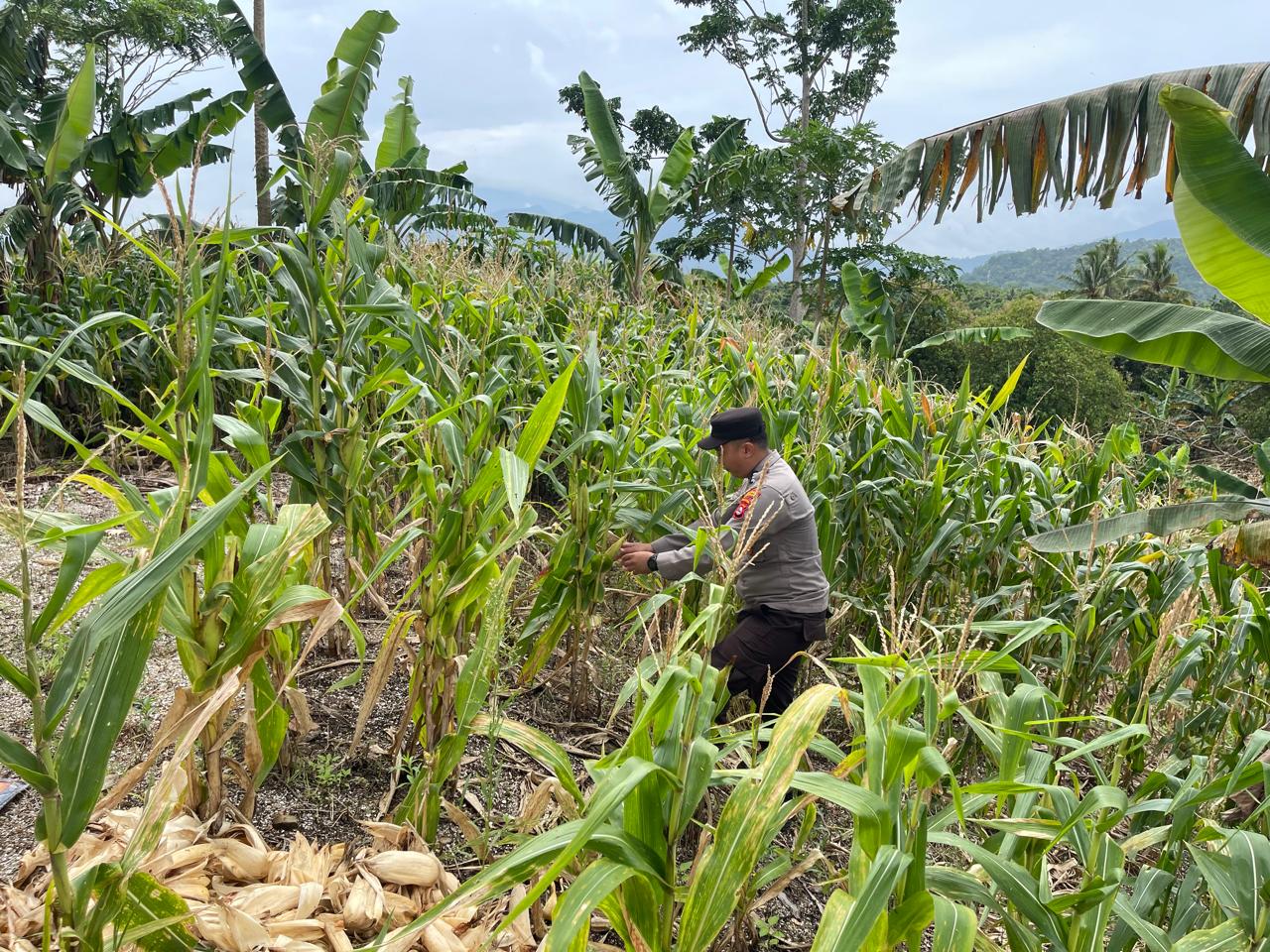 Dalam kesempatan tersebut bahwa Bhabinkamtibmas Polsek Cinangka bersama Kelompok Tani Kec. Cinangka Kab Serang Monitoring dan Pedampingan kegiatan Poktan di wilayahnya lahan yang sedang ditanami Tanaman Jagung dan Palawija.