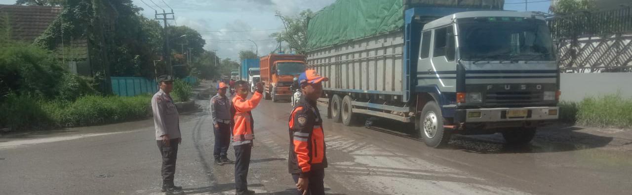 Demi Kelancaran dan Kenyamanan Pengguna Jalan, Bripka Leo & Dishub Laksanakan Gatur Lalu lintas Sore Hari Di Jalan Raya PT SMI Bojonegara