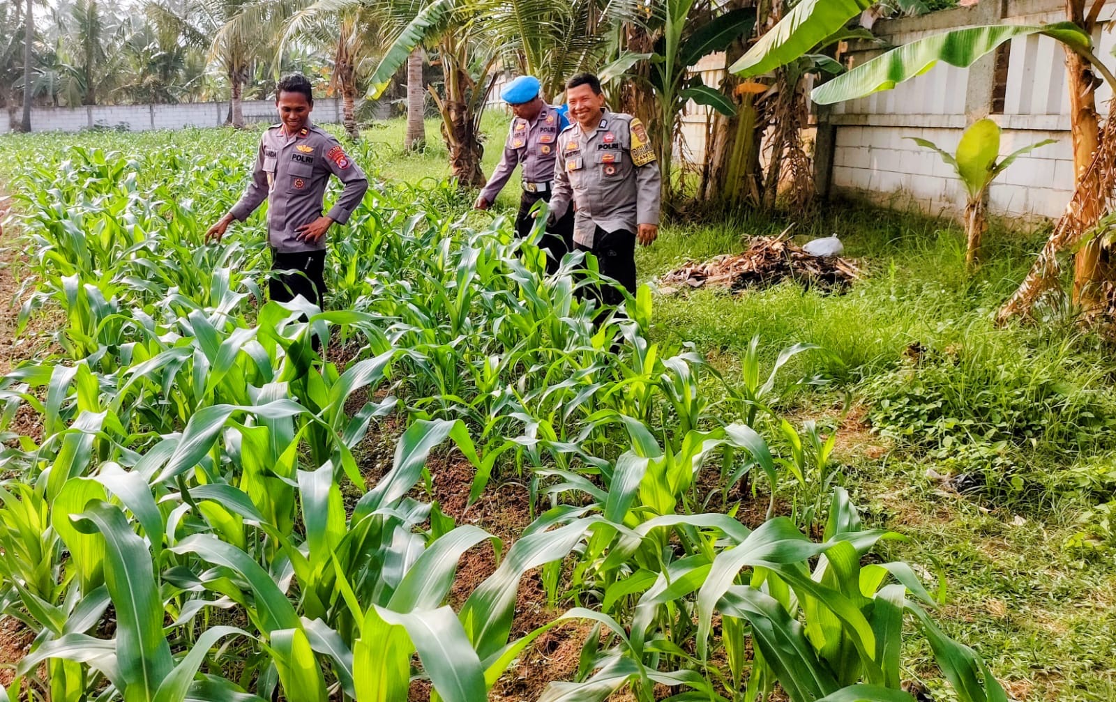 Polsek Purwakarta Polres Cilegon Dukung Ketahanan Pangan, Iptu Sukanda Bersama Anggota Cek Tanaman jagung di wilayah