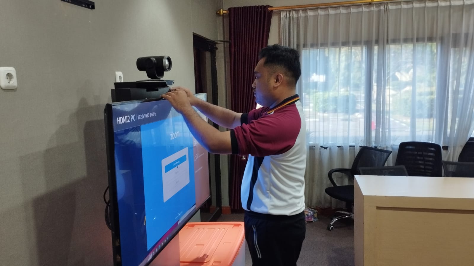 Anggota Tik Polres Cilegon Menyiapkan Sarana dan Prasarana Untuk Kegiatan Zoom meeting Dalam pelaksanaan kegiatan zoom meeting tersebut anggota TIK Polres Cilegon yang bertanggung jawab untuk menyiapkan peralatan zoom. Selain itu agar di tidak ada gangguan jaringan sebelum pelaksanaan anggota TIK melakukan pemeriksaan terhadap sarana dan prasarana tersebut . Satu jam sebelum kegiatan zoom meeting itu dimulai. Kapolres Cilegon AKBP. DR. MARTUA RAJA TARIPAR LAUT SILITONGA. melalui Kasi TIK AIPTU Suwanto, S.H. menyampaikan bahwa “untuk menunjang kelancaran penyampaian informasi anggota TIk Polres Cilegon selalu memeriksa sarana dan prasarana tersebut, sebelum maupun pada saat pelaksanaan akan selalu di monitor”