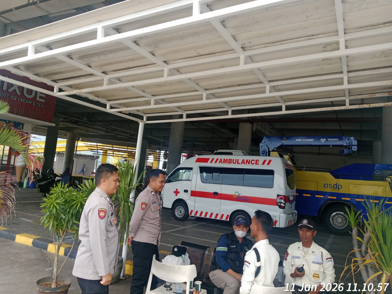 Cilegon - Personel Polsek Kskp Merak Polres Cilegon Polda Banten melaksanakan sambang dan patroli kawasan pelabuhan merak dalam rangka menjaga Harkamtibmas di Kawasan Pelabuhan Merak, Minggu (11/01/2026).