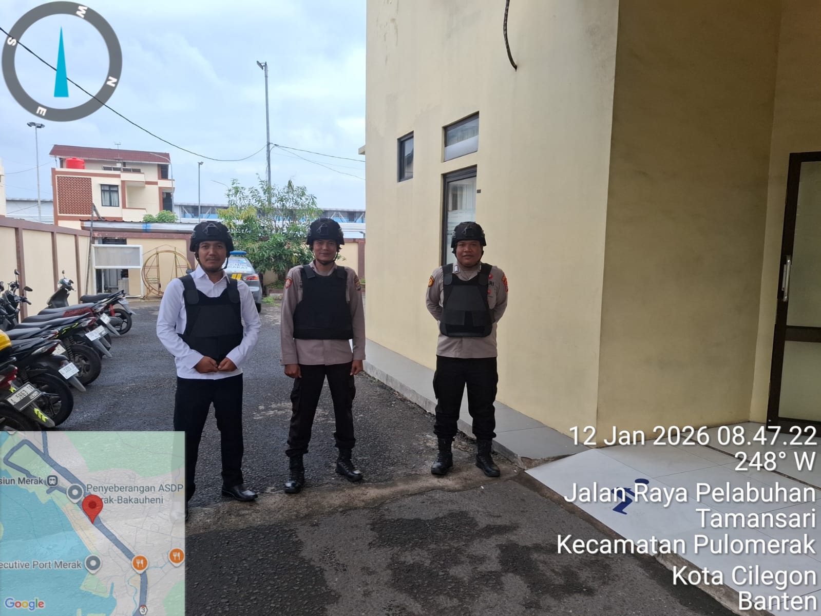 Cilegon - Personel piket jaga Polsek Kskp Merak Polres Cilgon Polda Banten melaksanakan siaga 1 Polsek pelaksanaan Sispam Mako oleh piket siaga dipimpin oleh Kspk Polsek Kskpy Merak Polres Cilegon Polda Banten, Senin (12/01/2026).
